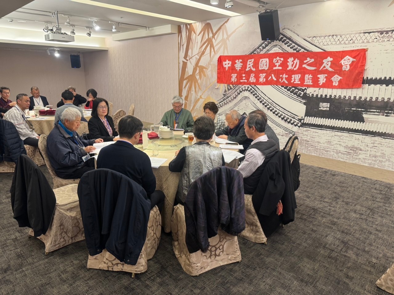 2025.03.08中華民國空勤之友會,假台北市中正區忠孝西路一段38號,台北市凱撒大飯店4樓王朝餐廳北京廳,召開第三屆第八次理監事聯席會議,由理事長周芳如主持。