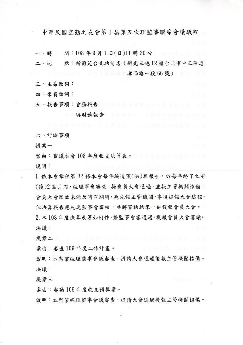 2019.09.01中華民國空勤之友會理監事聯席會議議程