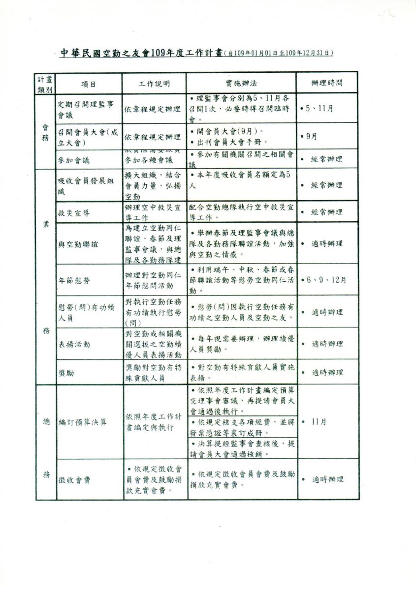中華民國空勤之友會109年度工作計畫