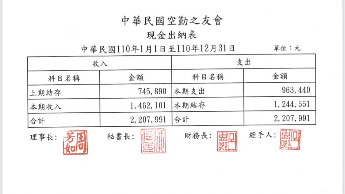中華民國空勤之友會110年度現金出納表(110.01.01-110.12.31)