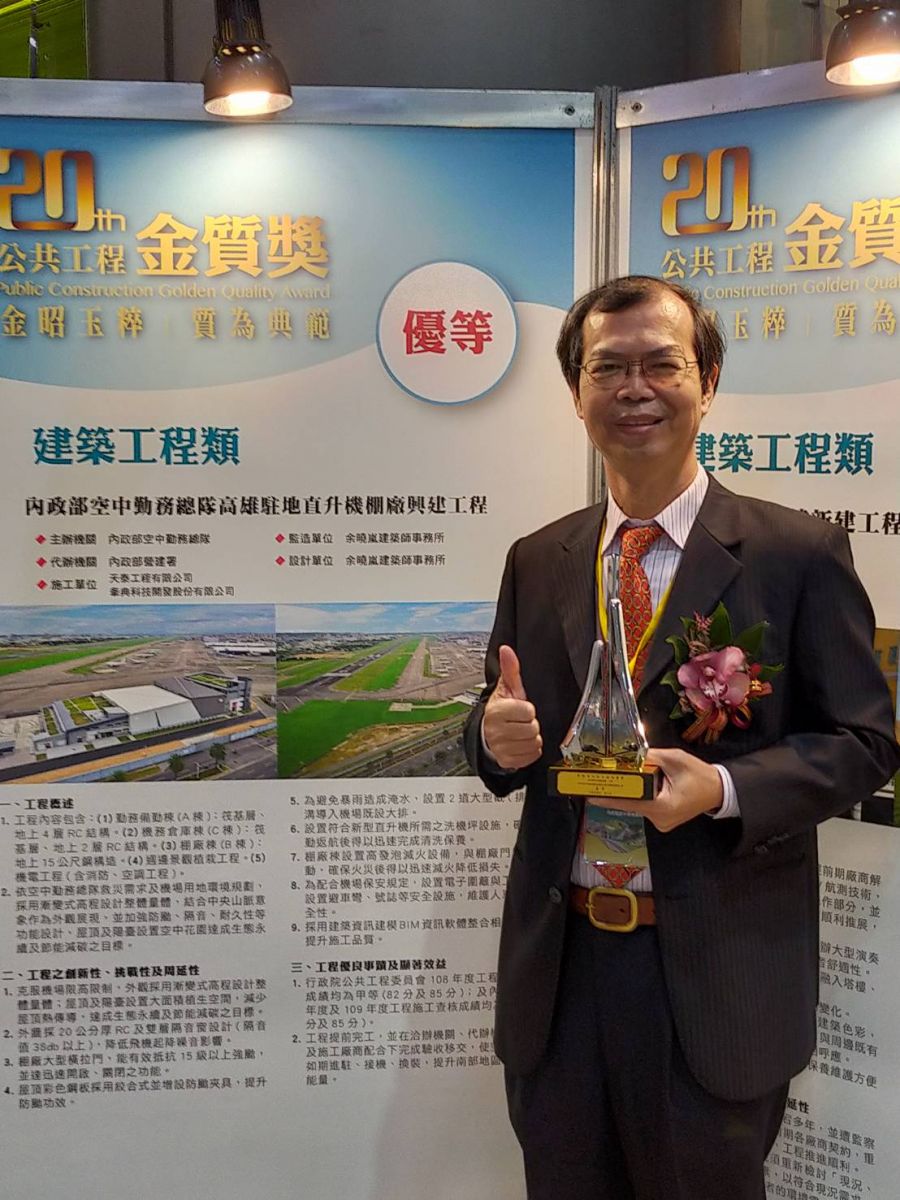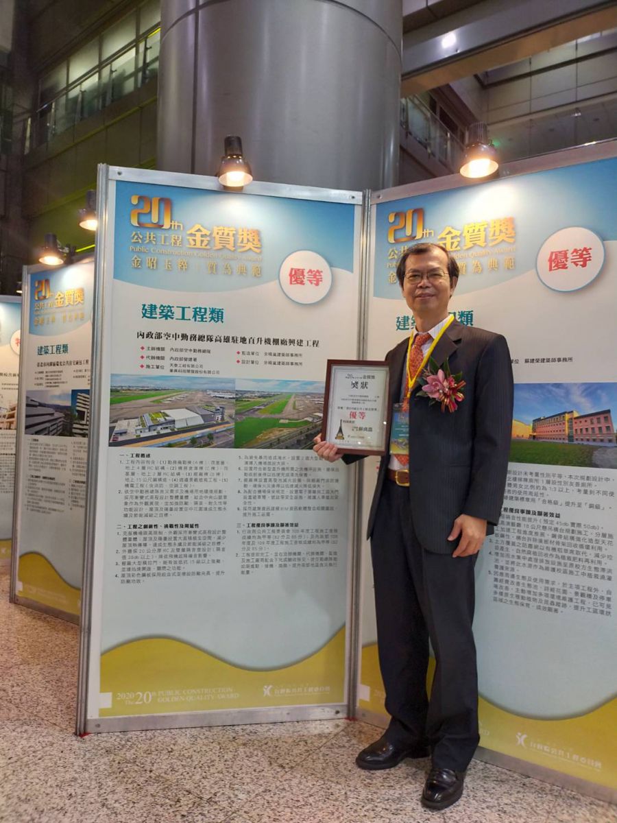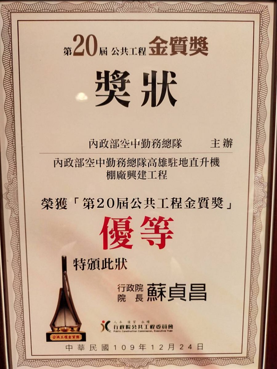 2020.12.24空勤總隊高雄駐地棚廠廳舍興建工程獲行政院公共工程委員會第20屆建築類金質獎優等頒