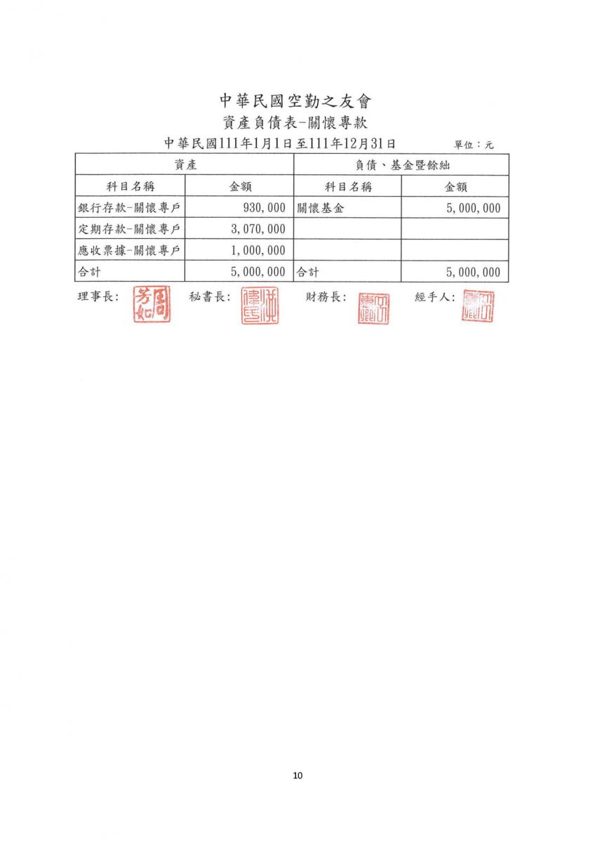 中華民國空勤之友會111年度資產負債表-關懷專款(111.01.01-111.12.31)