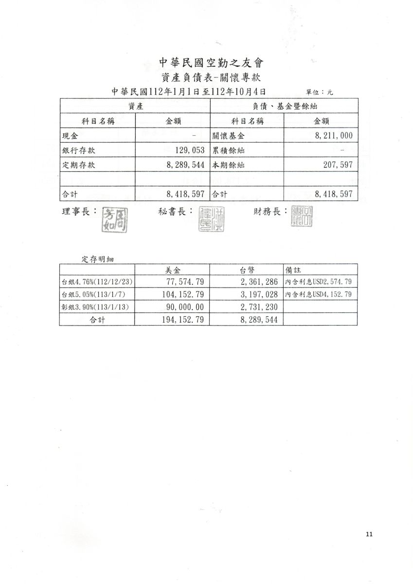 中華民國空勤之友會112年度資產負債表-關懷專款(112.01.01-112.10.04)