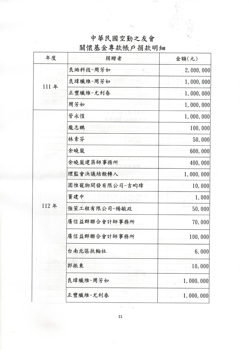 中華民國空勤之友會關懷專款帳戶捐款明細表