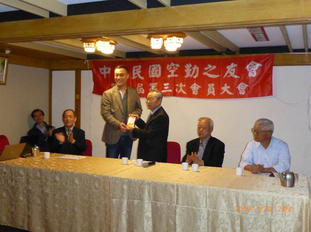 2019.01.20中華民國空勤之友會,假台北市民生西路300號4樓菊元日本料理餐廳,召開第一屆第四次理監事聯席會議,及第一屆第三次會員大會,由理事長蔡信夫主持。本次會員大會會員參加者踴躍,空勤總隊董劍城總隊長率領各駐地主管蒞臨指導,報到時每位出席者,都領到一份蔡信夫理事長精心定製贈送印有空總黑鷹標誌的T恤,大會開始分別由蔡理事長及董劍城總隊長致詞,接著由李季芳秘書長報告107年會務,會中由花蓮第一大隊第三隊林立威隊長專題報告,內容精彩,詳述空勤總隊五大任務-救災、救難、觀測偵巡、運輸及救護,及未來展望-改革、教育等,會員真是受益良多;會後由理事長蔡信夫代表空勤之友會致贈春節加菜金15萬元予空勤總隊,慰勞他們一整年來之勞苦!